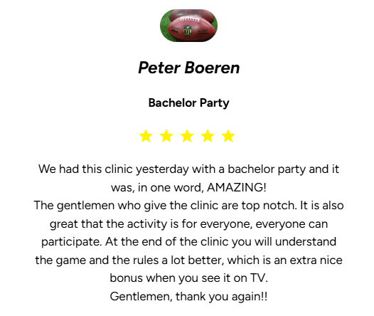 Always wondered what it is like to play American Football? This is your chance! We are experts in letting you experience the ultimate team sport, American Football!